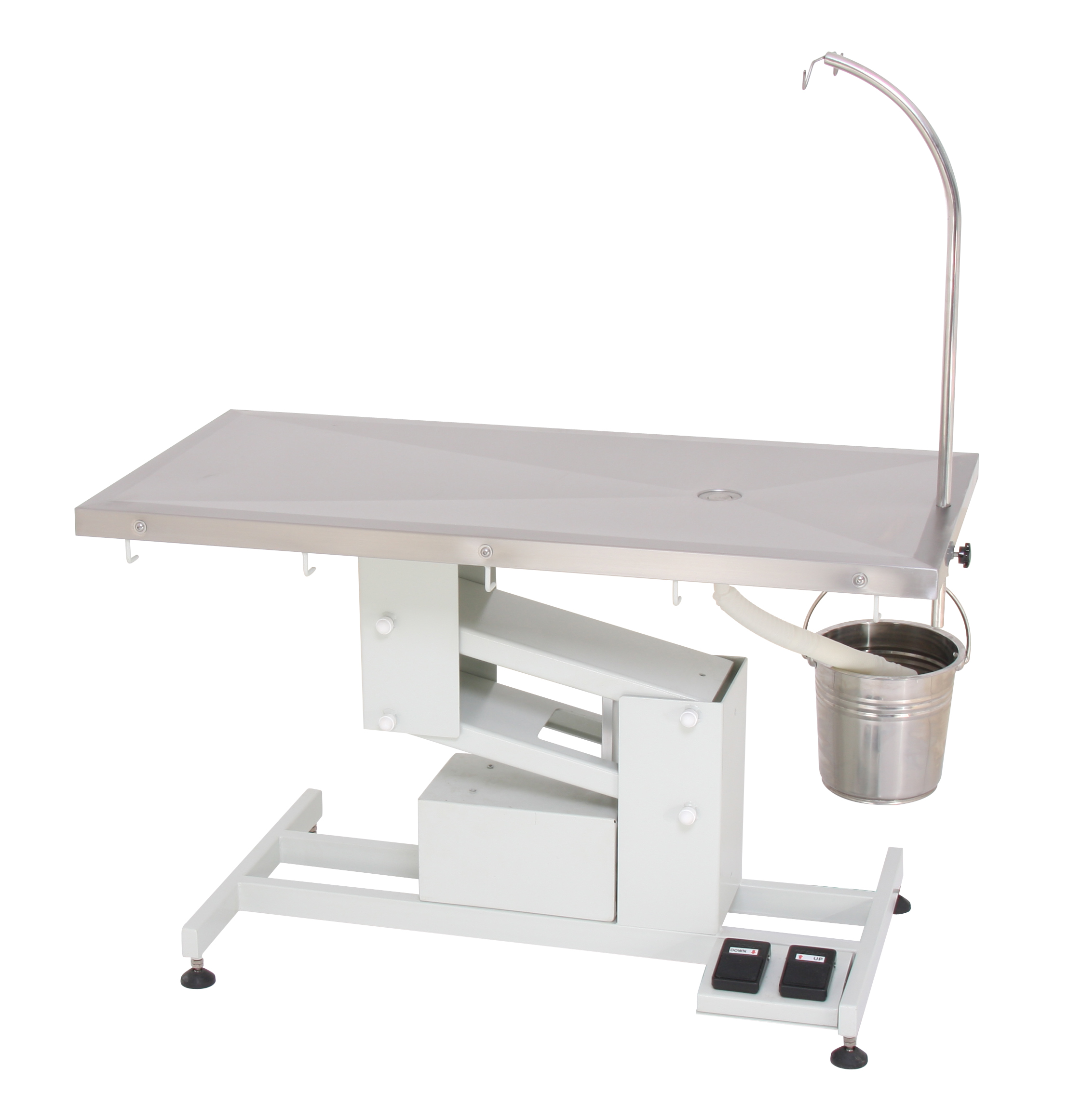 Table vétérinaire polyvalente avec système de levage électrique performant.