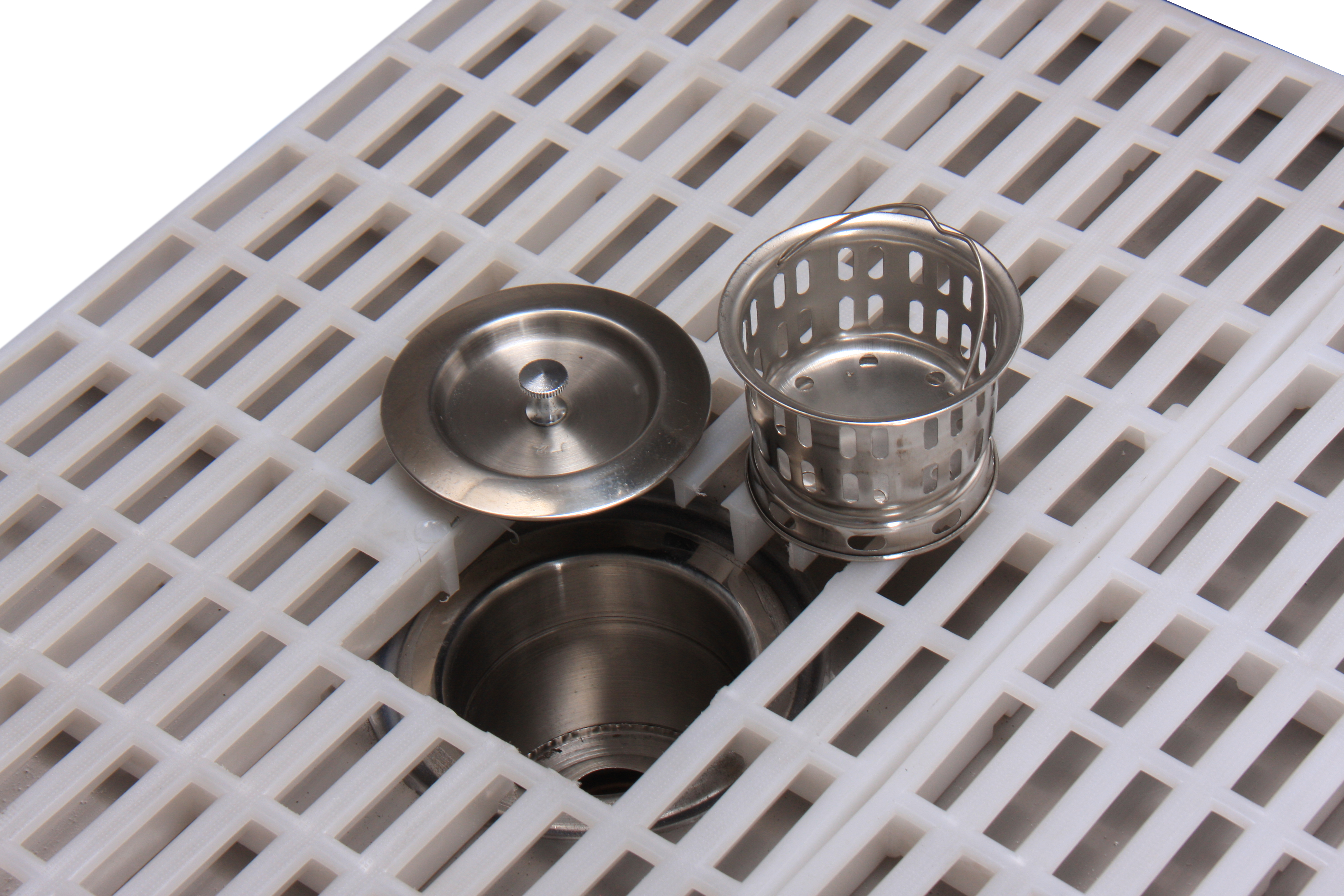 Un tapis antidérapant en silicone, un filtre à poils, ainsi que l’ensemble de la robinetterie sont fournis.