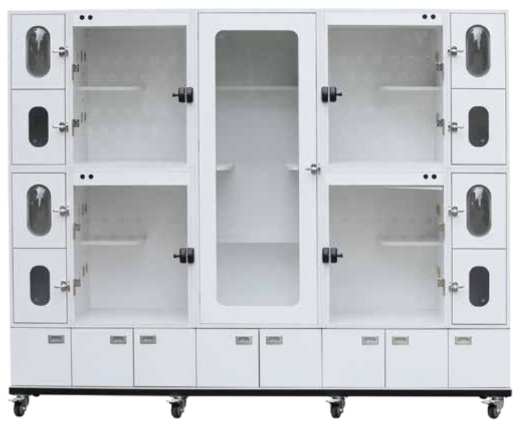 Option : cage d'oxygénothérapie, porte perfusion, prises électriques sur le dessus