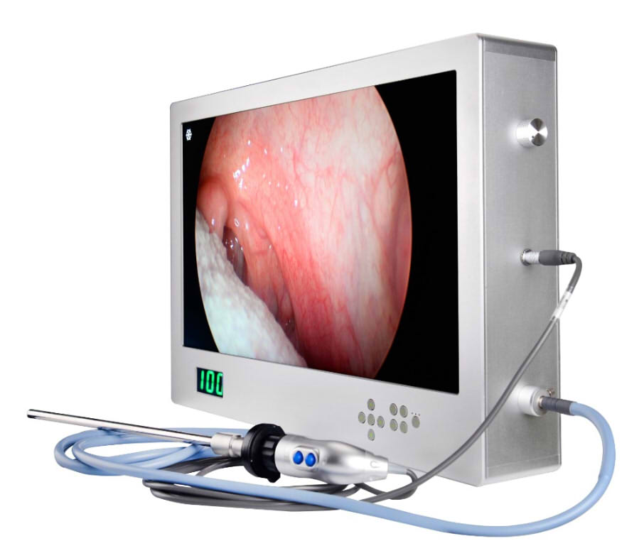 Unité vidéo 3 en 1 intgérant une source lumineuse LED 80W, une camera full HD et un écran haute définition.