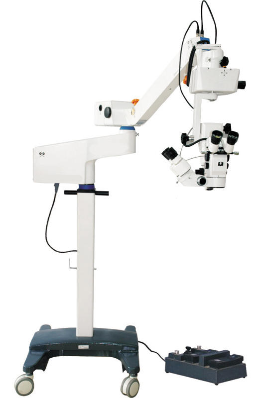 Microscope opératoire équipé de trois objectifs interchangeables pour une utilisation polyvalente en ophtalmologie, orthopédie et micro-chirurgie.